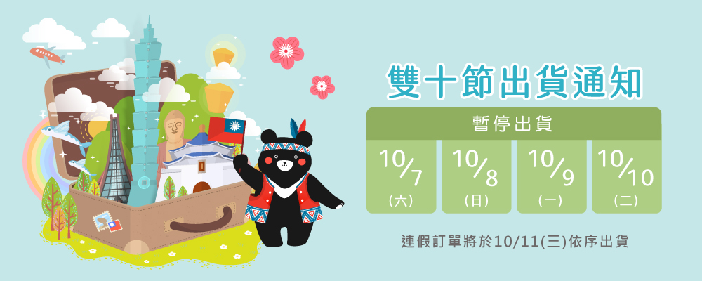 連假期間官網訂單將於10/11(三) 開始依序出貨