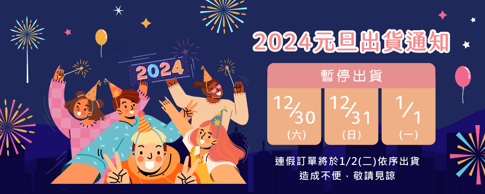 連假期間官網訂單將於1/2(二) 開始依序出貨