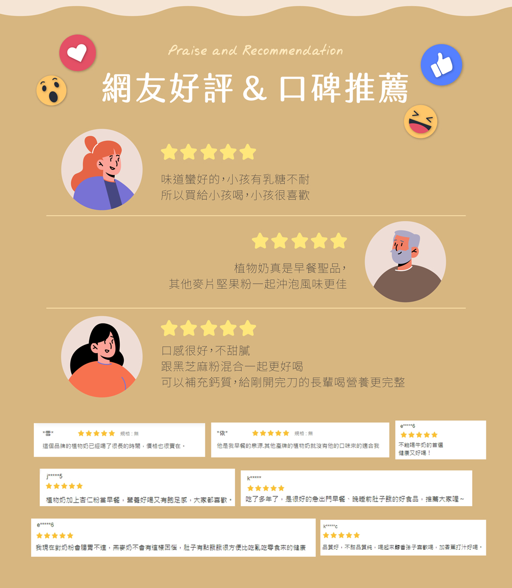 ※過敏原:本產品含有”燕麥粉、大豆豆奶粉、大豆分離蛋白、卵磷脂粉”,不適合其過敏者食用。
