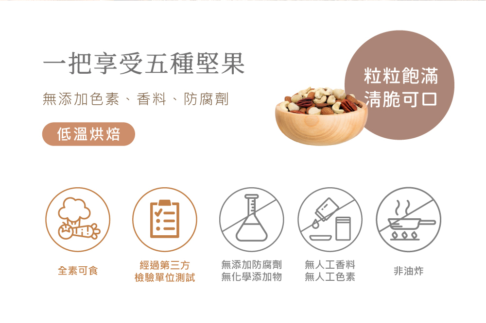 全素可食.無調味五種堅果一次滿足!