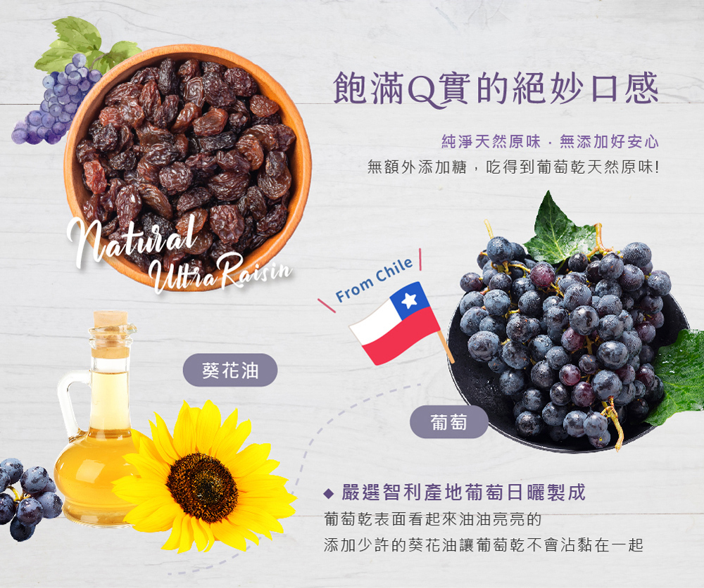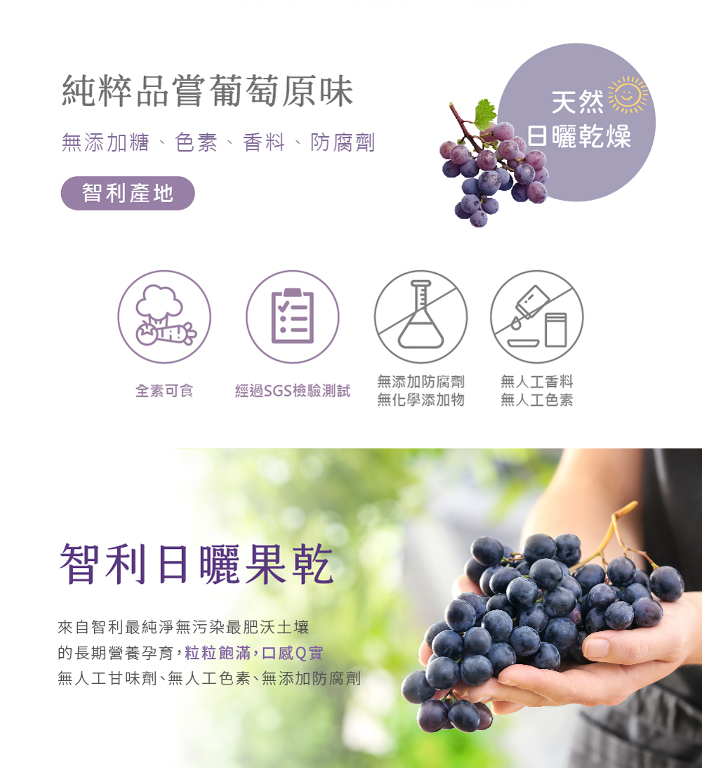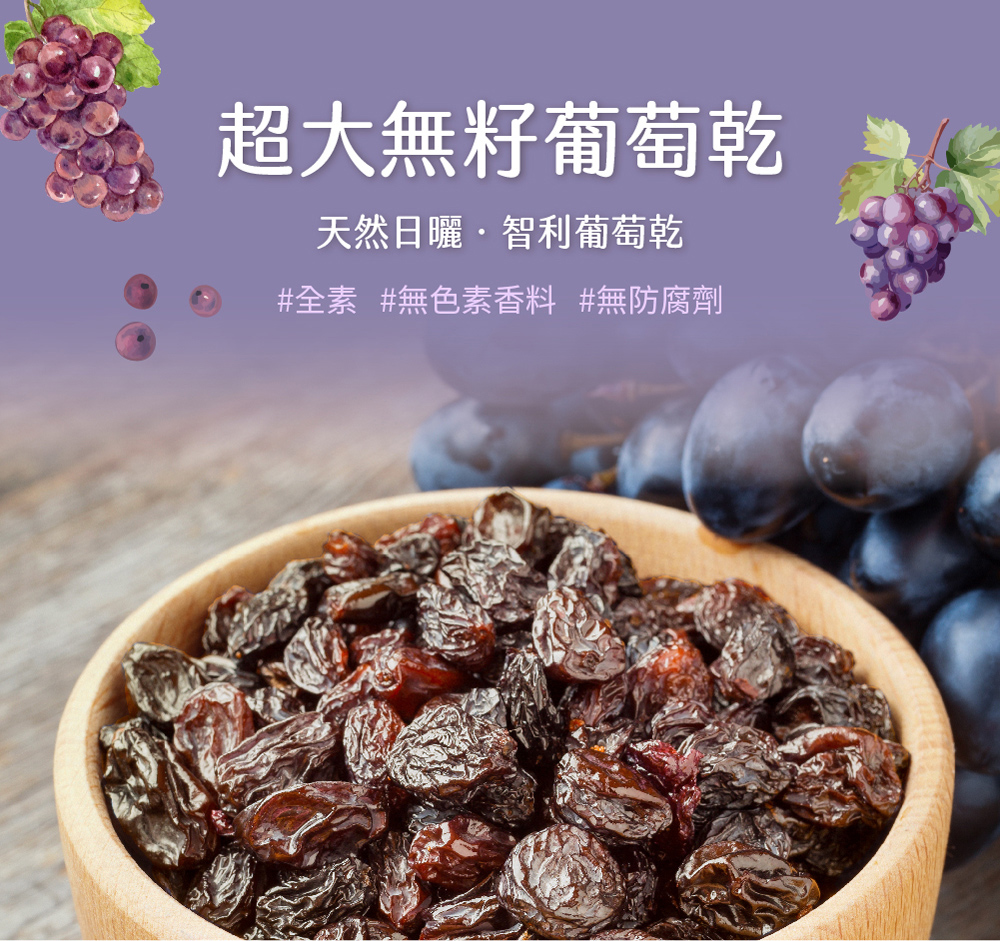 。嚴選智利葡萄,日曬乾燥,天然美味